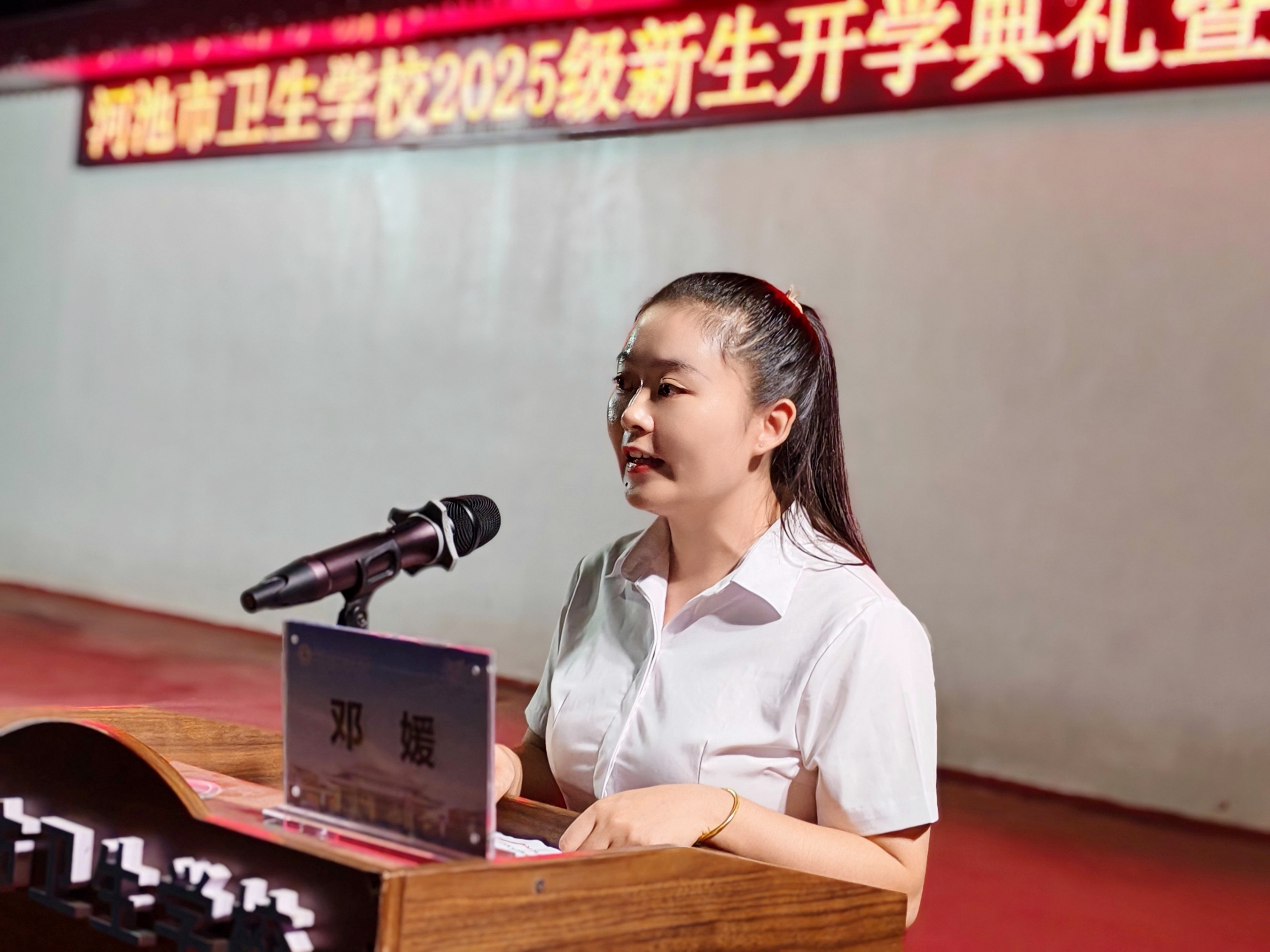 展示环节后,班主任代表邓媛老师发言,表示将全力做好学生的教育管理及服务工作,陪伴学生成长。教官代表梁侗承诺将科学组训、文明施教,高标准完成军训任务。新生代表苏诗涵则表示,一定会珍惜机会、认真参训,以优异成绩开启河池卫校新生活。副校长刘钢宣读了军训方案与纪律要求,为军训顺利开展提供清晰指引。