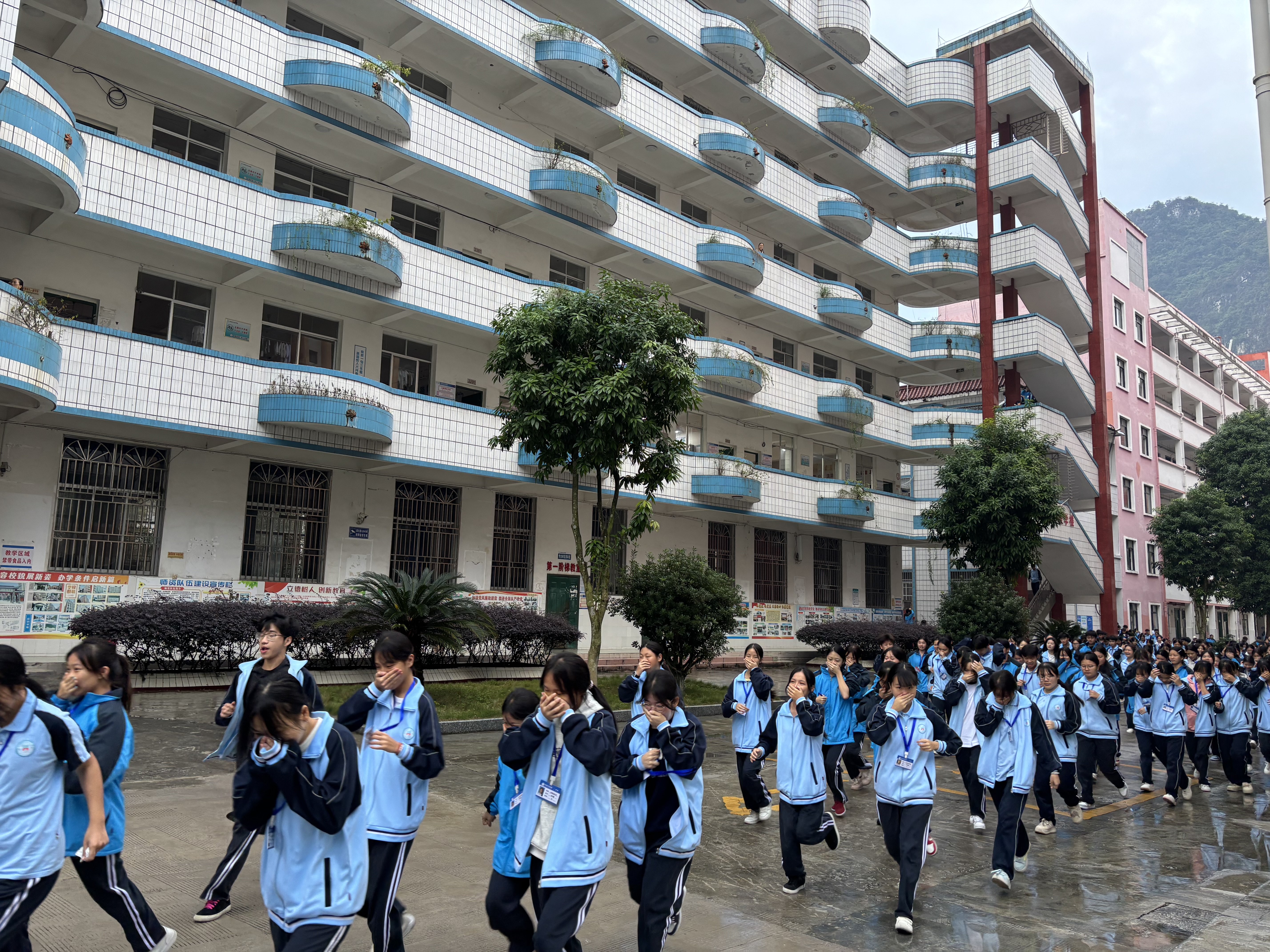 在疏散过程中,班主任们坚守楼梯口、转角等关键位置,引导学生快速通行,有效防止拥挤和踩踏。整个过程组织严密、行动迅速,师生沉着冷静、互帮互助,校园秩序井然。仅用数分钟,全体师生均安全撤离至运动场指定区域集合。