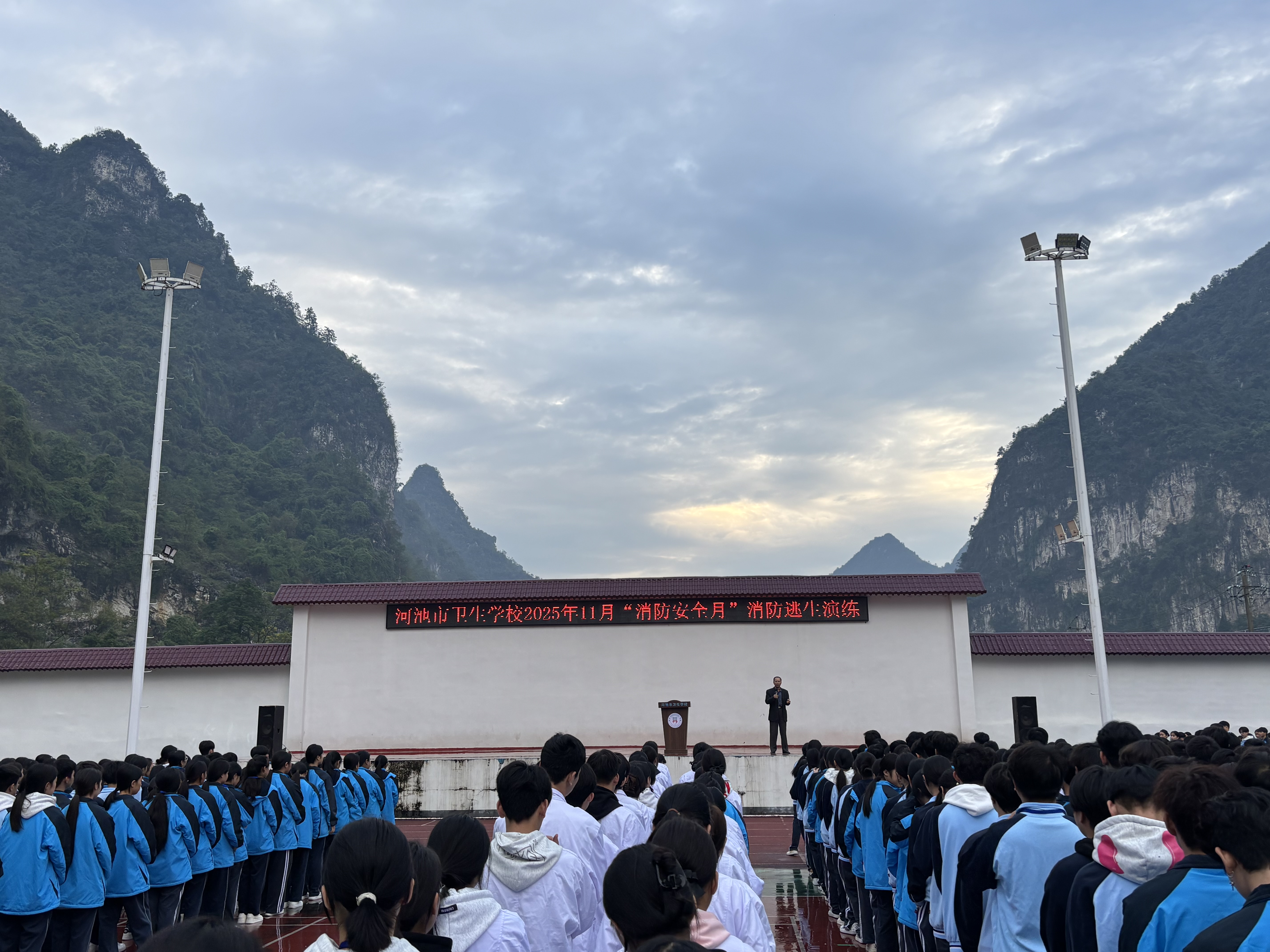 为深入贯彻落实习近平总书记关于安全生产的重要指示精神,进一步加强校园消防安全教育,提升师生应急避险能力,河池市卫生学校于2025年11月17日上午8时,成功举行了2025年秋季学期“消防安全月”消防逃生演练。全校共计2000余名师生共同参与。