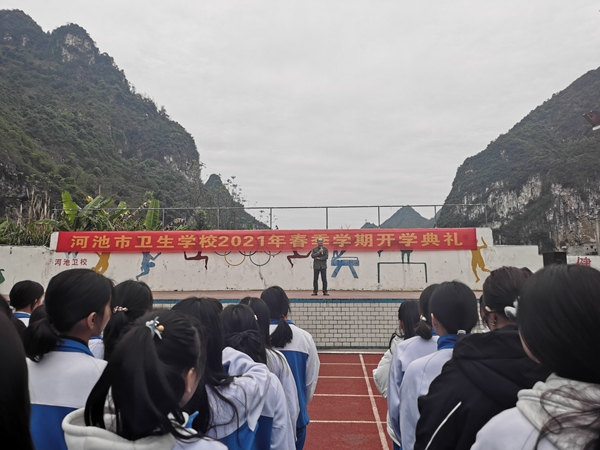 (通讯员  梁贞淑)3月2日下午,河池市卫生学校全体师生在运动场召开2021年春季学期开学典礼。